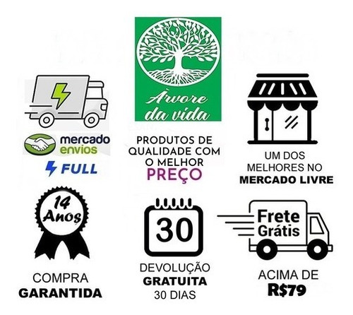 Nós da Árvore da vida estamos a 15 anos no Mercado Livre,para oferecer os melhores produtos e o melhor atendimentos,antes e depois da sua compra. Pedidos feitos ate as 22:00 o pedido sera postado no mesmo dia. Contamos com suporte das 06:00 as 22:00 de segunda a sábado.Pelos canais de atendimentos enviados apos a finalização do pedido.